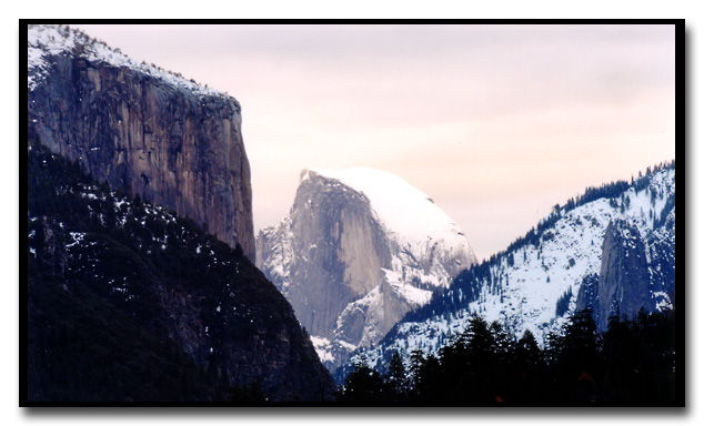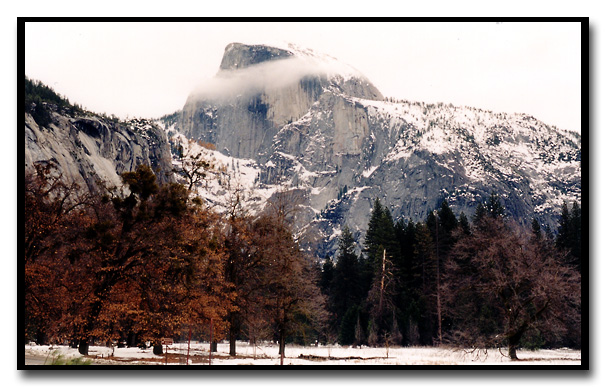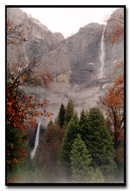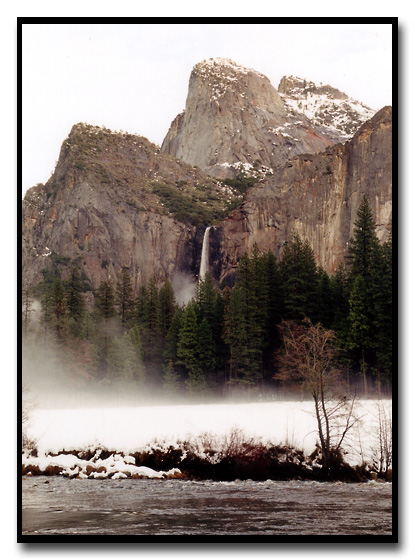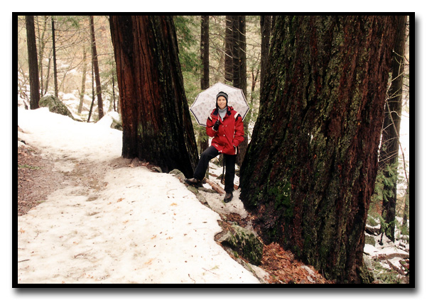 Die reën kon ons nie onderkry nie - ons tweede dag in Yosemite het ons met sambrele en poncho's die Mirror Lake staproete aangepak. Nicol het ziplock sakkies met rekkies om die kamera gebind en 2 films in die reën geskiet! Dit was koud en nat, Mirror lake was geen "mirror" nie (dit was heeltemal gevries) maar nietemin het ons 'n onvergeetlike avontuur gehad.