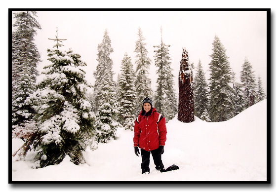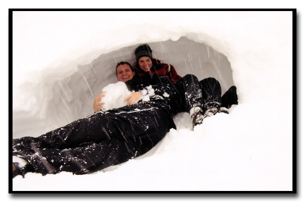 In Badger Pass tydens 'n sneeuval. Op plekke het ons tot by ons heupe in die sneeu ingetrap en ons spiere was die volgende dag styf - harde werk om in die sneeu te stap!