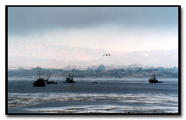 I took this shot towards Monterey, with sunshine over there, but overcast where I was standing. I underexposed by a stop to accentuate the gloomy weather.