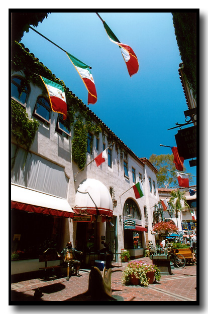 | THis little side street in Santa Barbara had a very European feel to it. I used a 20mm lens, framing to get the flags right above me in as well. | ![]() |